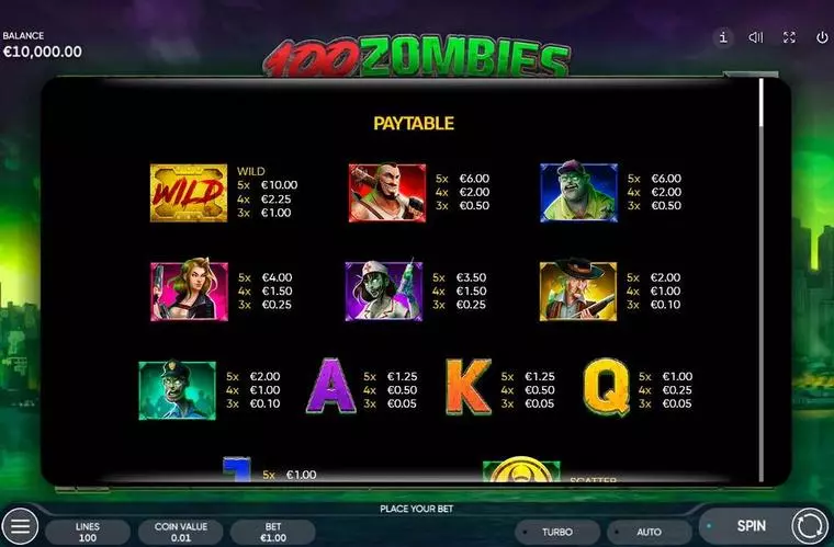 100 Zombies is a 5 Reel / 100 Line mobile slot game, made by Endorphina in in October 2020