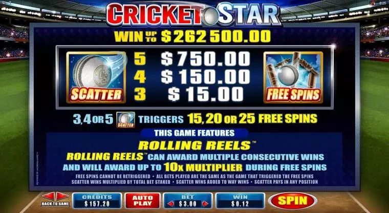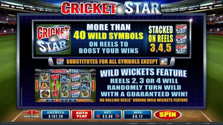 Cricket Star is a 5 Reel / 243 Line mobile slot game, made by Microgaming in in February 2015