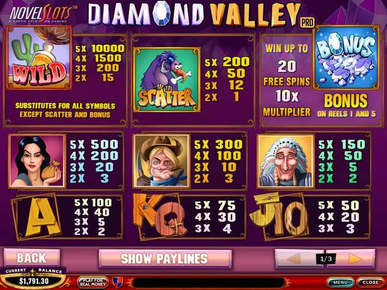 Diamond Valley Pro is a 5 Reel / 20 Line mobile slot game, made by PlayTech in n/a n/a