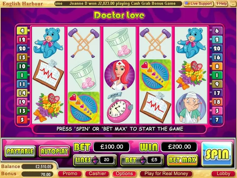 Doctor Love is a 5 Reel / 20 Line mobile slot game, made by WGS Technology in n/a n/a