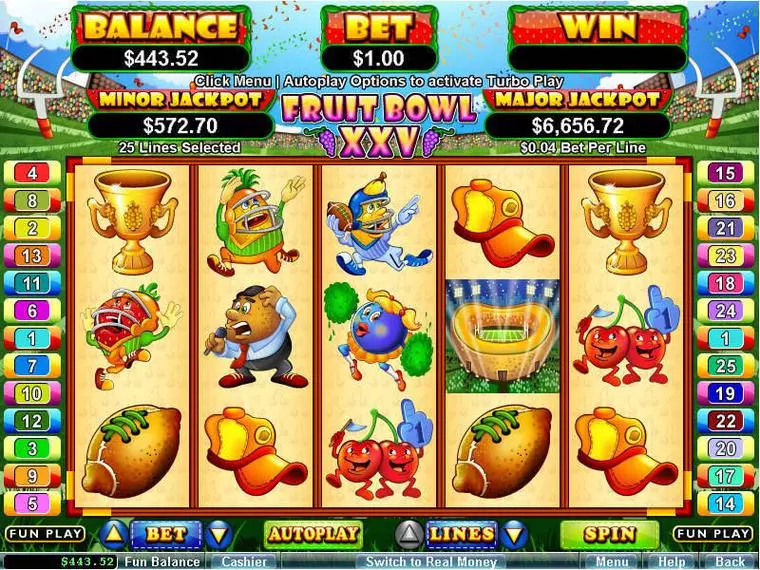 Fruit Bowl XXV is a 5 Reel / 25 Line mobile slot game, made by RTG in in August 2010