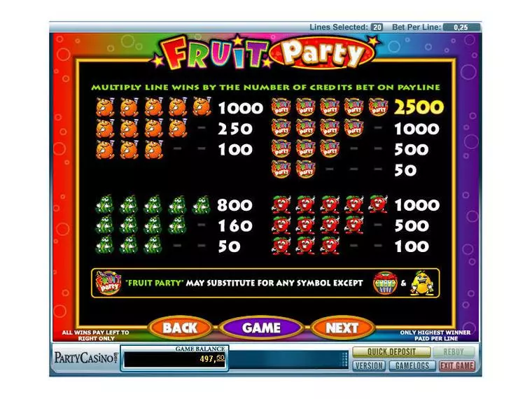 Fruit Party is a 5 Reel / 20 Line mobile slot game, made by bwin.party in n/a n/a