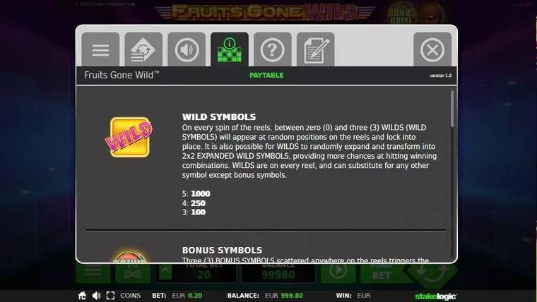 Fruits Gone Wild is a 5 Reel / 20 Line mobile slot game, made by StakeLogic in in September 2017