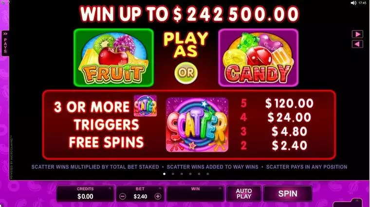 Fruits vs Candy is a 5 Reel / 243 Line mobile slot game, made by Microgaming in in January 2017
