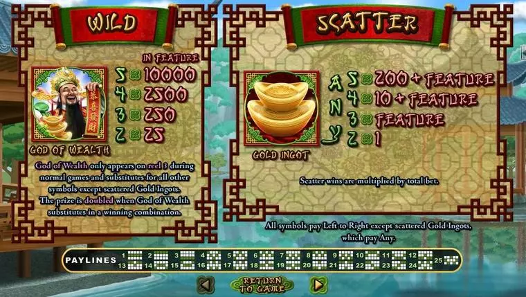God of Wealth is a 5 Reel / 25 Line mobile slot game, made by RTG in in January 2016