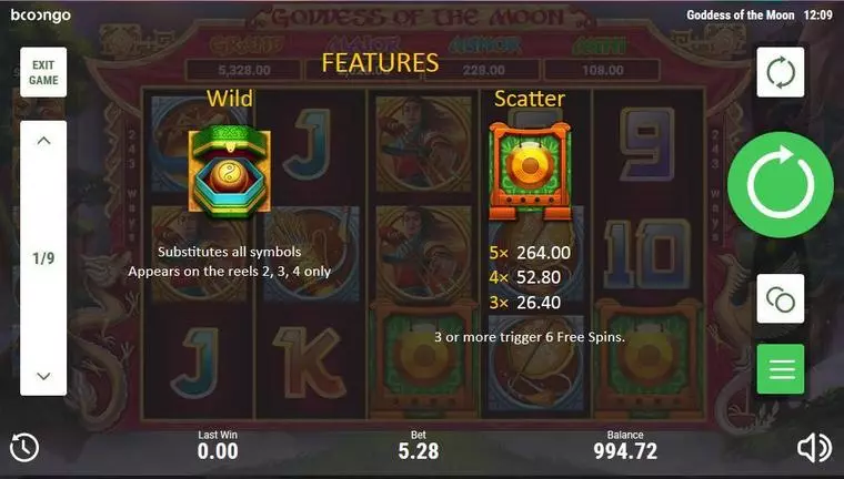 Goddes of the Moon is a 5 Reel / 243 Line mobile slot game, made by Booongo in in March 2018