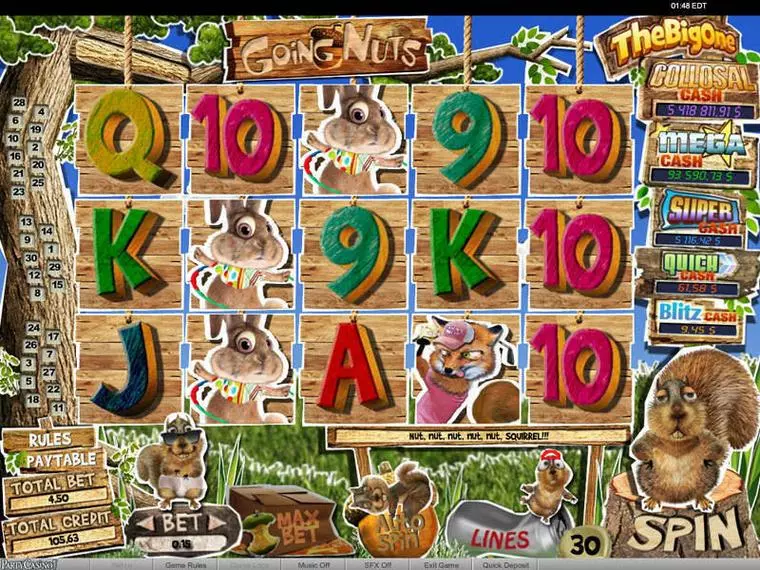 Going Nuts is a 5 Reel / 30 Line mobile slot game, made by bwin.party in n/a n/a