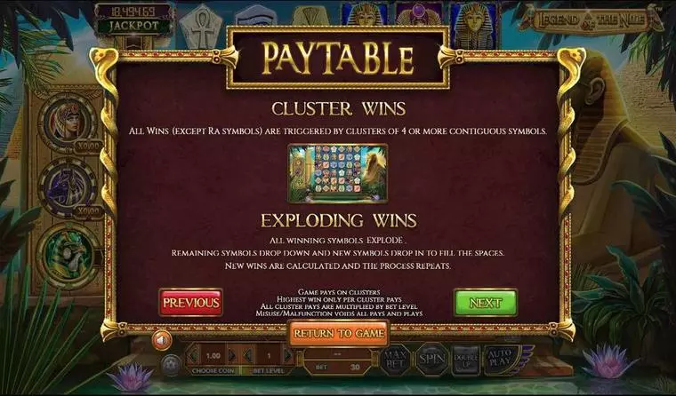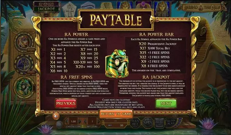 Legend of the Nile is a 6 Reel / 30 Line mobile slot game, made by BetSoft in in December 2017