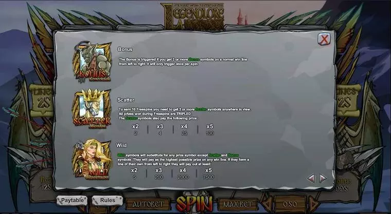 Legendlore is a 5 Reel / 25 Line mobile slot game, made by 1x2 Gaming in in November 2016
