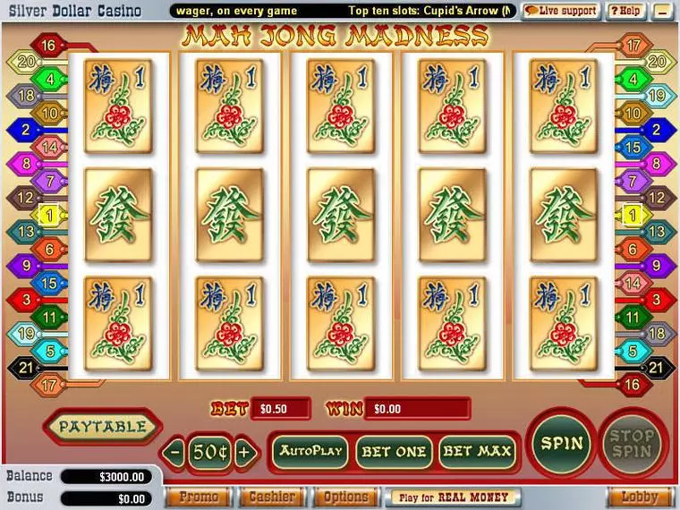 Mah Jong Madness is a 5 Reel / 21 Line mobile slot game, made by WGS Technology in n/a n/a