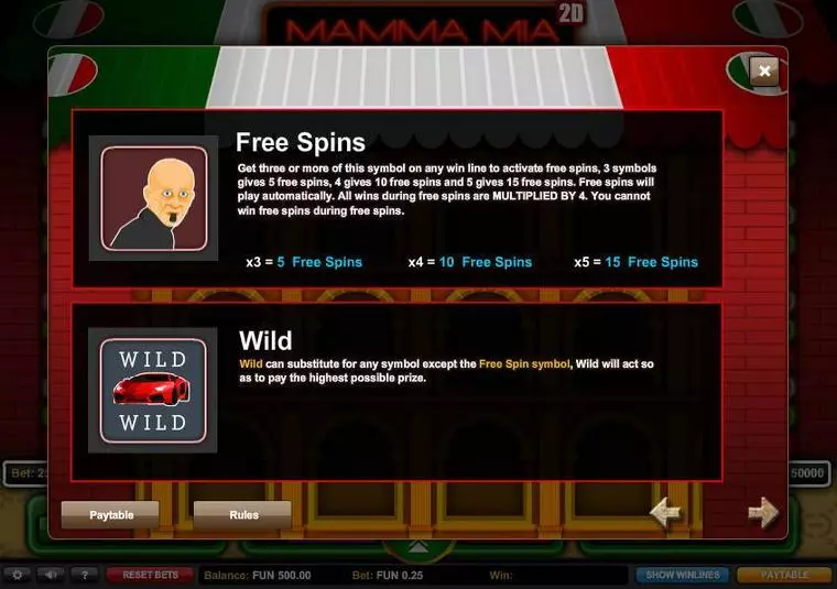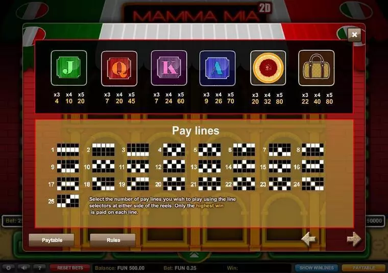 Mamma Mia is a 5 Reel / 25 Line mobile slot game, made by 1x2 Gaming in n/a n/a