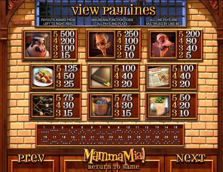 Mamma Mia is a 5 Reel / 30 Line mobile slot game, made by BetSoft in n/a n/a