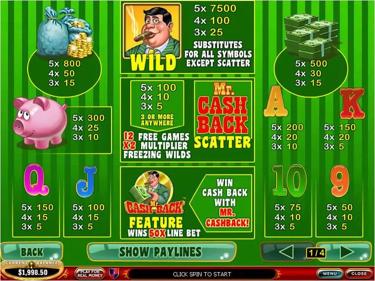 Mr. Cashback is a 5 Reel / 15 Line mobile slot game, made by PlayTech in n/a n/a