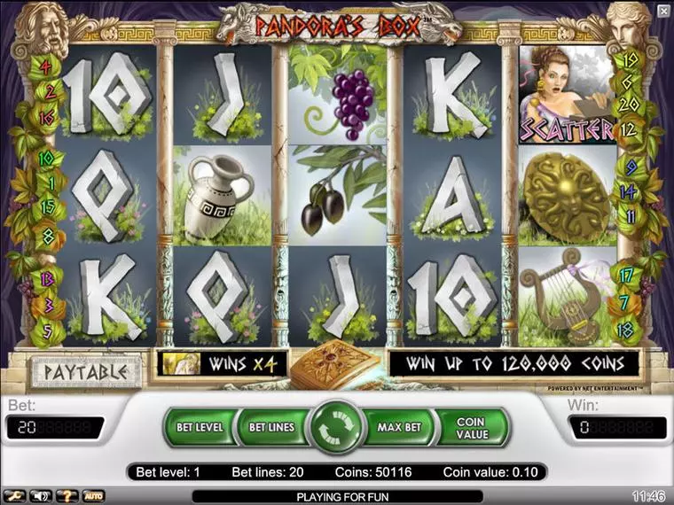 Pandora's Box is a 5 Reel / 20 Line mobile slot game, made by NetEnt in n/a n/a