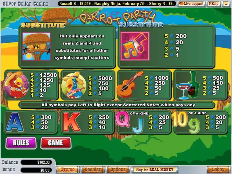 Parrot Party is a 5 Reel / 25 Line mobile slot game, made by WGS Technology in in March 2009