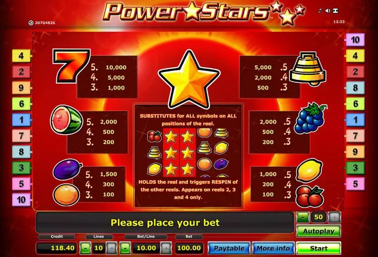 Power Stars is a 5 Reel / 10 Line mobile slot game, made by Novomatic in n/a n/a