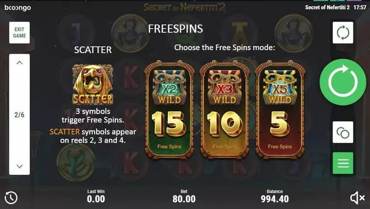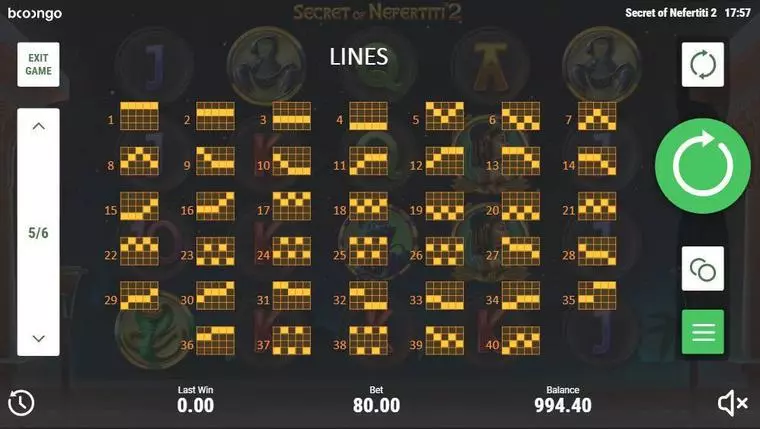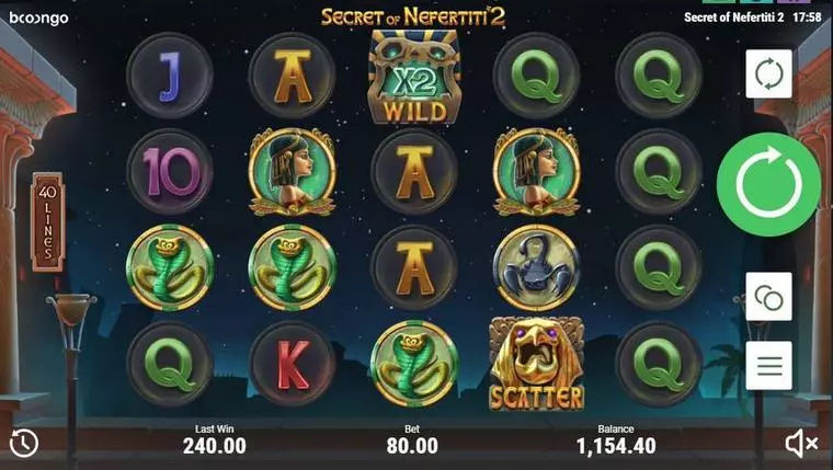 Secret of Nefertiti 2 is a 5 Reel / 40 Line mobile slot game, made by Booongo in in April 2018