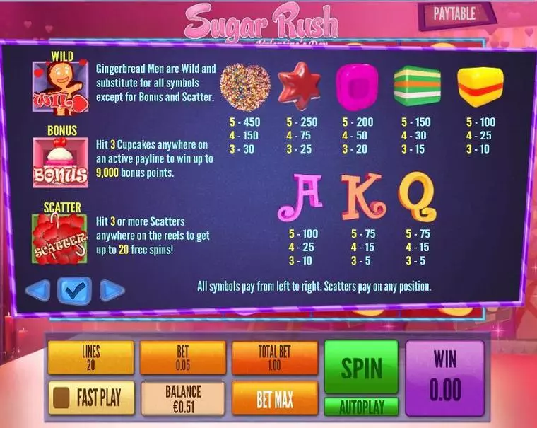 Sugar Rush Valentine's Day is a 5 Reel / 20 Line mobile slot game, made by Topgame in in February 2015