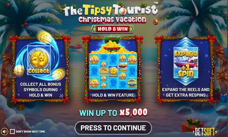 The Tipsy Tourist - Christmas Vacation is a 5 Reel / 20 Line mobile slot game, made by BetSoft in in November 2025